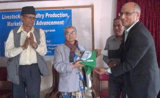 May 9, 2016. Hon. Minister Shanta Manavi, Ministry of Livestock Development, Government of Nepal, attended the "Livestock and Poultry Production, Marketing and Advancement" Interaction program hosted by the Asta-Ja Research and Development Center (Asta-Ja RDC) in Hotel Kamal, Kathmandu, About 60 participants representing livestock producers, government officials, researchers, journalists, and other stakeholders attended the event. Meanwhile, the Asta-Ja RDC also initiated its Volunteers Program presenting the first Asta-Ja RDC Volunteer T-Shirt to the Hon. Minister Manavi by Asta-Ja RDC President, Dr. Durga D. Poudel, Minister Manavi presented the Asta-Ja RDC Volunteer T-shirts to the volunteers. In her address to the audience, Minister Manavi appreciated the work of Asta-Ja RDC in agricultural and livestock development in Nepal. She stressed many challenges including improved breeds, diseases and parasite control, feed and nutrition, and markets in relation to livestock industry in Nepal. Livestock producers shared their livestock production and marketing problems to the audience.