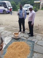 UNICEF Country Chief Mr. Stanley Chitekwe and his associates Mr. Anirudra Sharma observe corn drying during Monitoring and Evaluation Field Visit of UNICEF - Asta-Ja RDC project in Nala bazaar, Nala-4, Kavre on July 12, 2017.